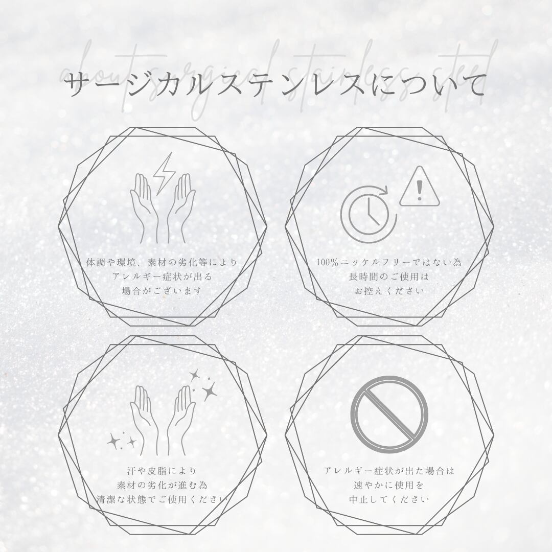 素材:サージカルステンレス、ステンレス、合金(蕾パーツ)、アクリル(フラワーパーツ)、ラバーストーン